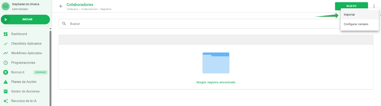 Después de enviar el archivo para la importación, siga el progreso en el Histórico de importaciones, ubicado en la parte inferior del menú izquierdo.