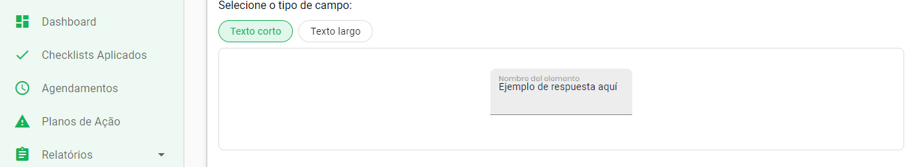 Permite que el auditor responda de forma abierta. Puede configurarse como un campo de texto corto (para respuestas precisas) o texto largo (para descripciones detalladas).