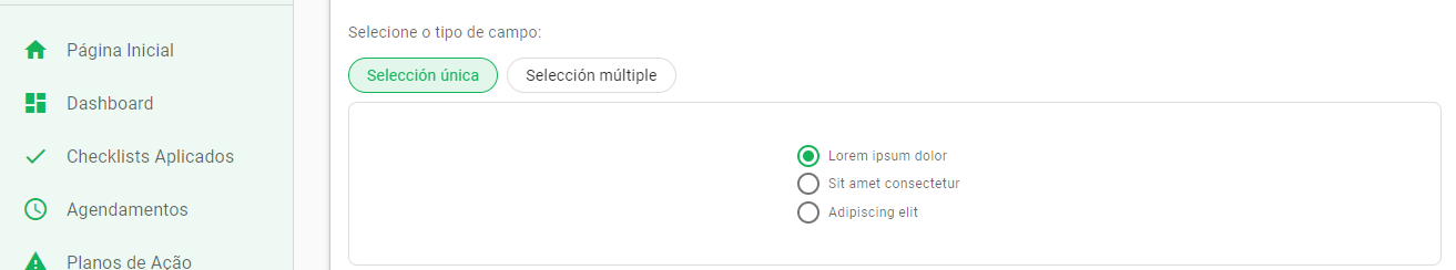 Permite crear un menú desplegable de opciones personalizadas. Puede definir si el usuario debe elegir una única opción o si se permite la selección múltiple.