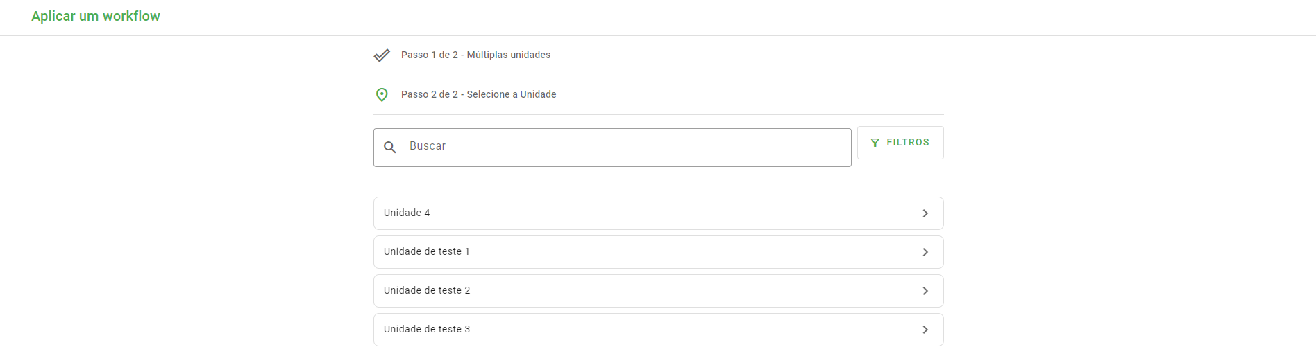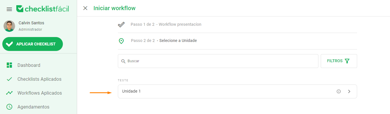 - Al seleccionar la unidad desde el link, la página redirigirá automáticamente a la aplicación del primer paso del flujo.