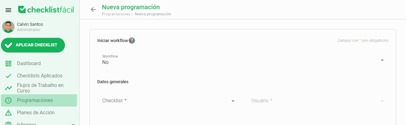 - Checklist: Solo estará disponible el checklist vinculado al 1° paso del flujo.