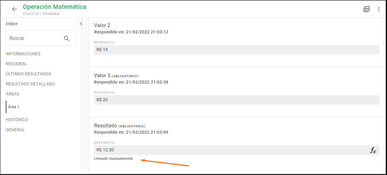 Importante: La opción “Llenado manualmente” solo estará habilitada cuando se produzca un error en el cálculo en la aplicación. Como por ejemplo, si un ítem que forma parte de esta operación no se llenase y, al calcularse con un ítem faltante, se generará un error y se puede completar manualmente, el propio informe se lo comunicará.
