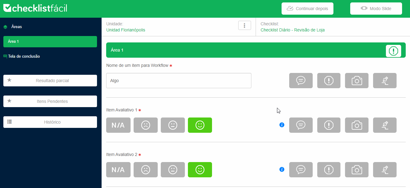 Opción ‘Checklist aplicados deben pasar por análise’ activa: Puede consultar más detalles sobre esta configuración en este enlace.