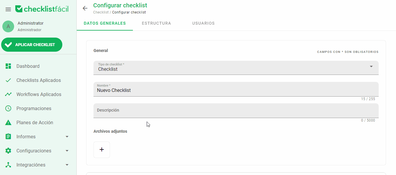 Próximos pasos: Para continuar con la configuración avanzada, recomendamos leer sobre la estructura y los vínculos del Checklist.