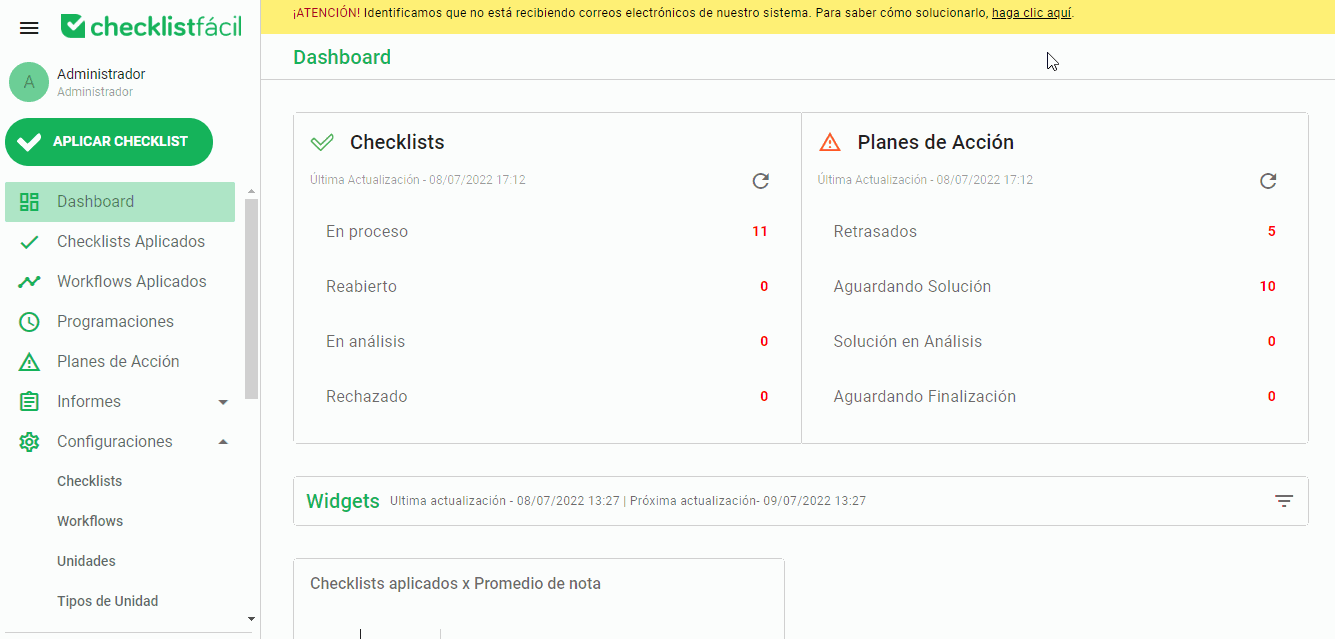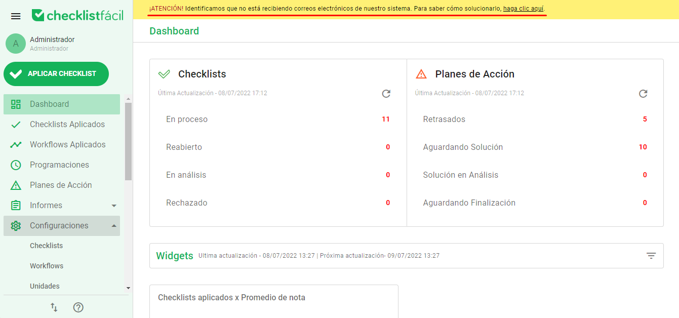 Si no recibe correos electrónicos de Checklist Fácil, como notificaciones de checklist finalizados, puede haber un problema entre su notificación de correo electrónico y la configuración de entrega.