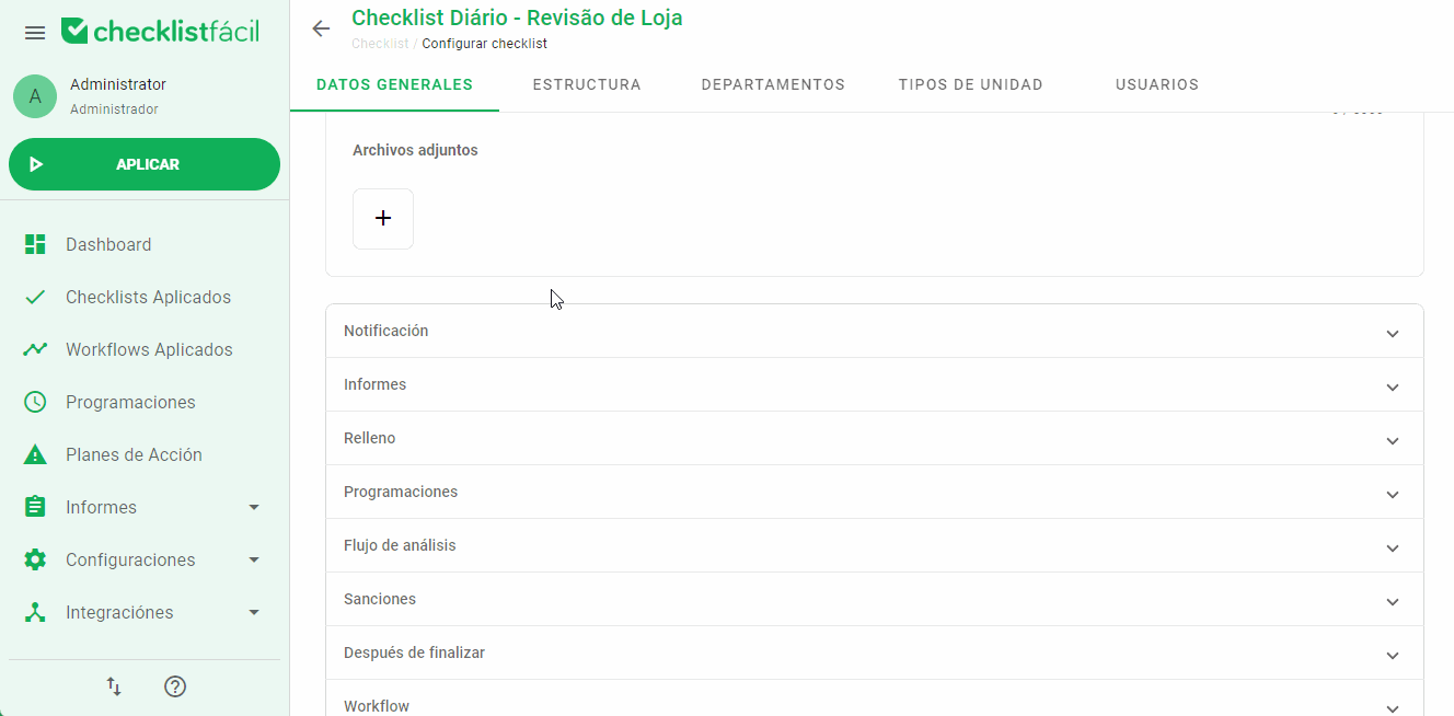 - Navegue a Configuraciones > Checklists > Editar.