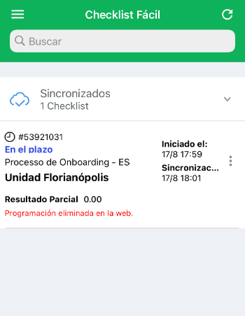 Cómo se canceló la programación que estaba en curso, no será posible sincronizarla. Solo si un administrador reinicia la programación será posible completar y sincronizar su checklist de manera efectiva.