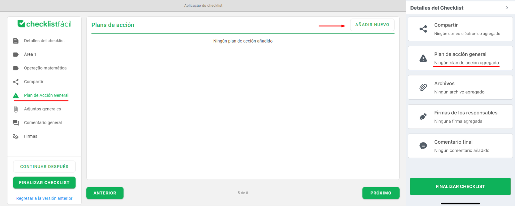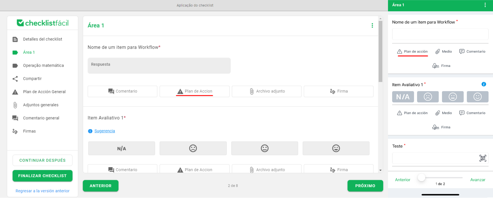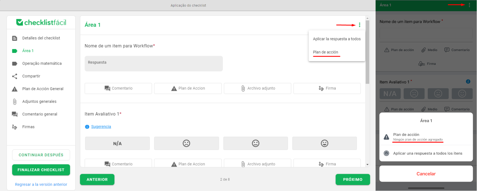 Durante la aplicación de un checklist, es posible registrar Planes de Acción para documentar y resolver cualquier impedimento o problema detectado en tiempo real.