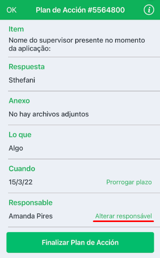 Dentro de los detalles del plan en la app, encontrará la opción Cambiar responsable directamente junto al nombre del encargado actual.