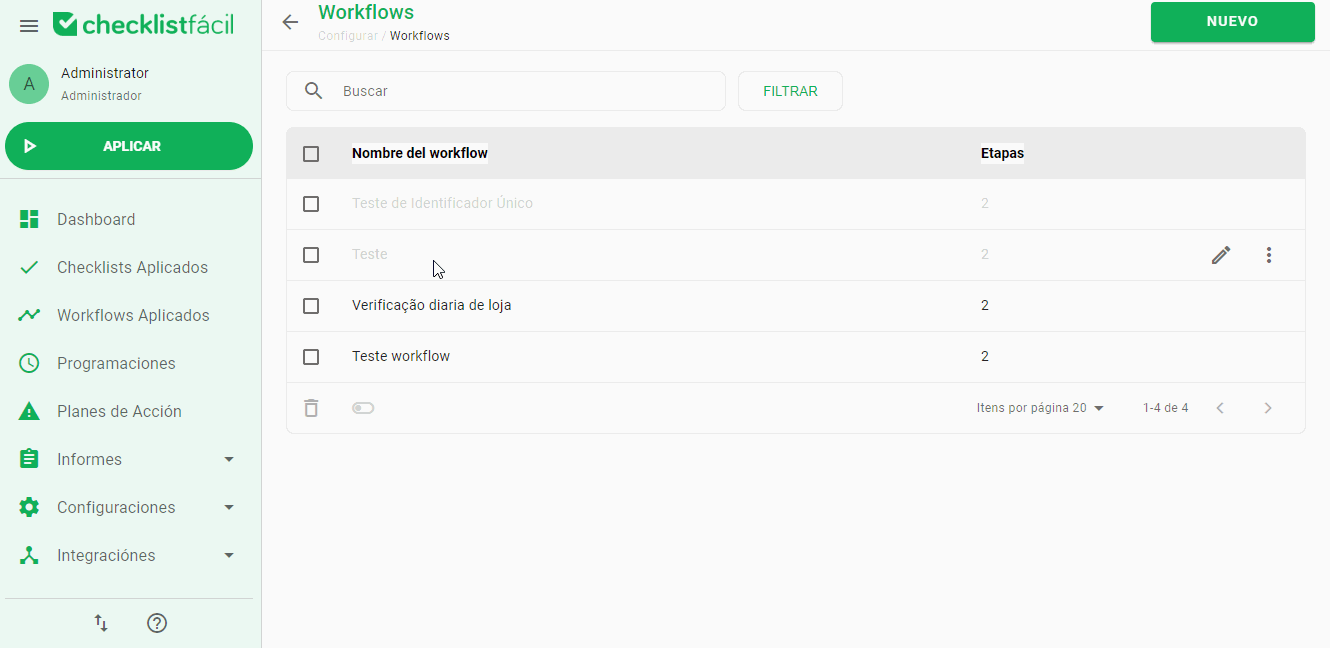 Atención: Al eliminar un Workflow, el sistema también eliminará permanentemente todos los registros de Workflows aplicados (historial de ejecuciones) vinculados a él.