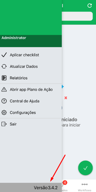 Para ver qué versión está utilizando, acceda a la aplicación Checklist Fácil en su dispositivo y abra el menú del lado izquierdo. Entonces la versión se puede encontrar en el pie de página:
