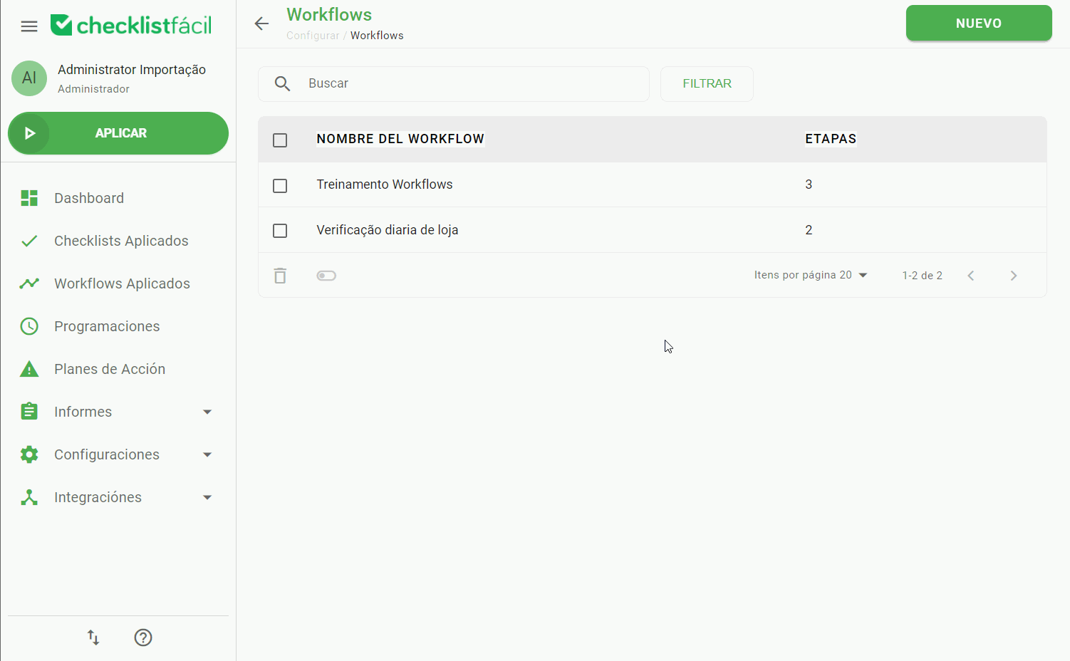 Tras confirmar la acción, el sistema generará automáticamente un nuevo Workflow con el mismo nombre pero con el sufijo "Copia". Este nuevo registro hereda toda la configuración de etapas, checklists y vínculos del original, permitiéndole realizar ajustes sin afectar el proceso inicial.