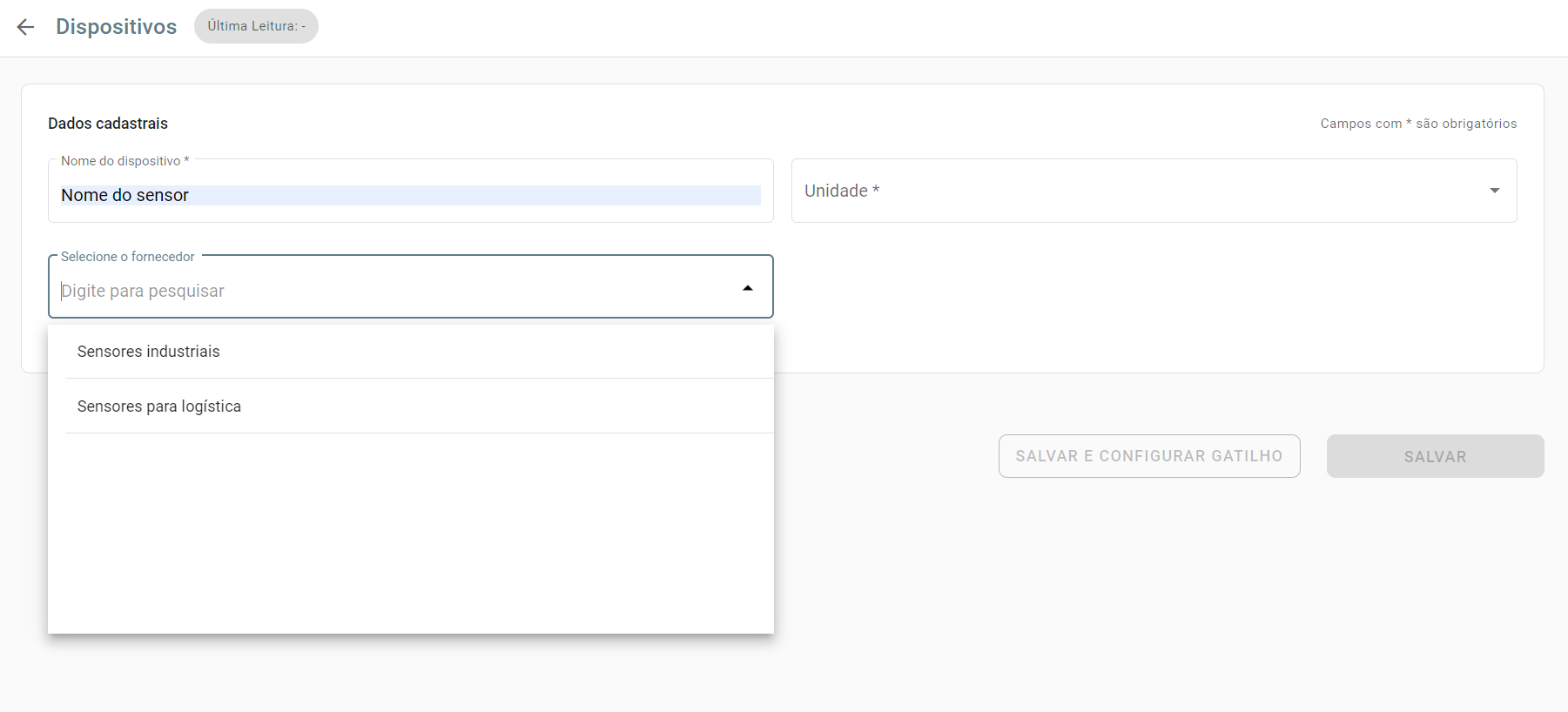 En primer lugar, debe definir el nombre del sensor, la unidad y el proveedor.