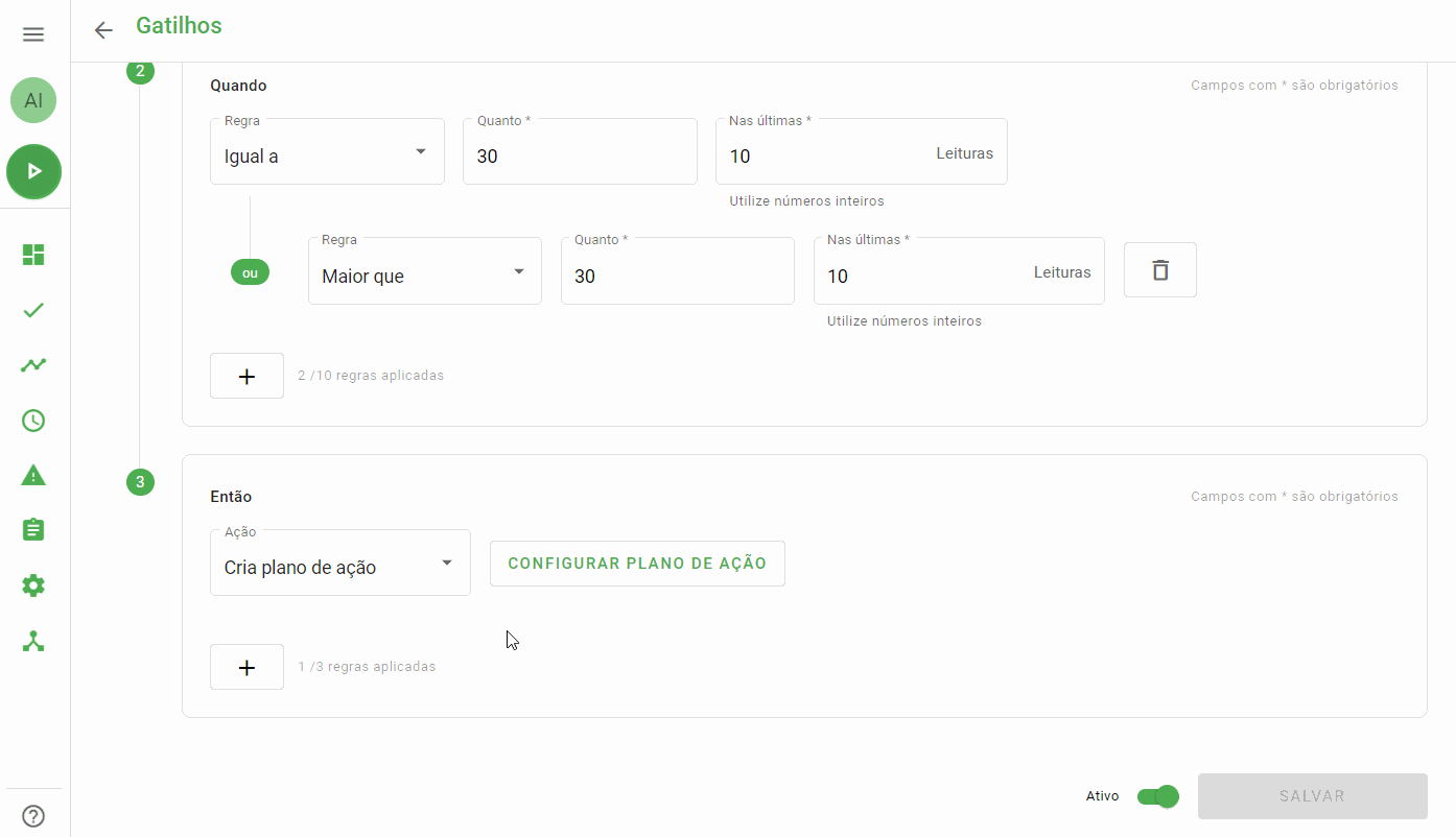 - Crear un plan de acción; crea un plan de acción automáticamente de acuerdo con la lectura del sensor.