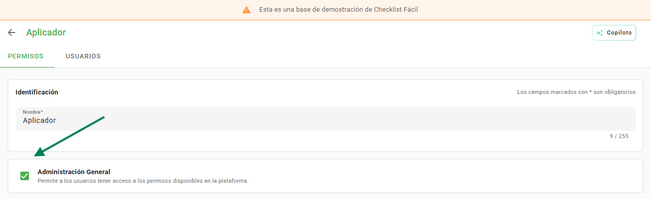 Para acceder a los cambios, el perfil del usuario debe tener el permiso de Administrador General.