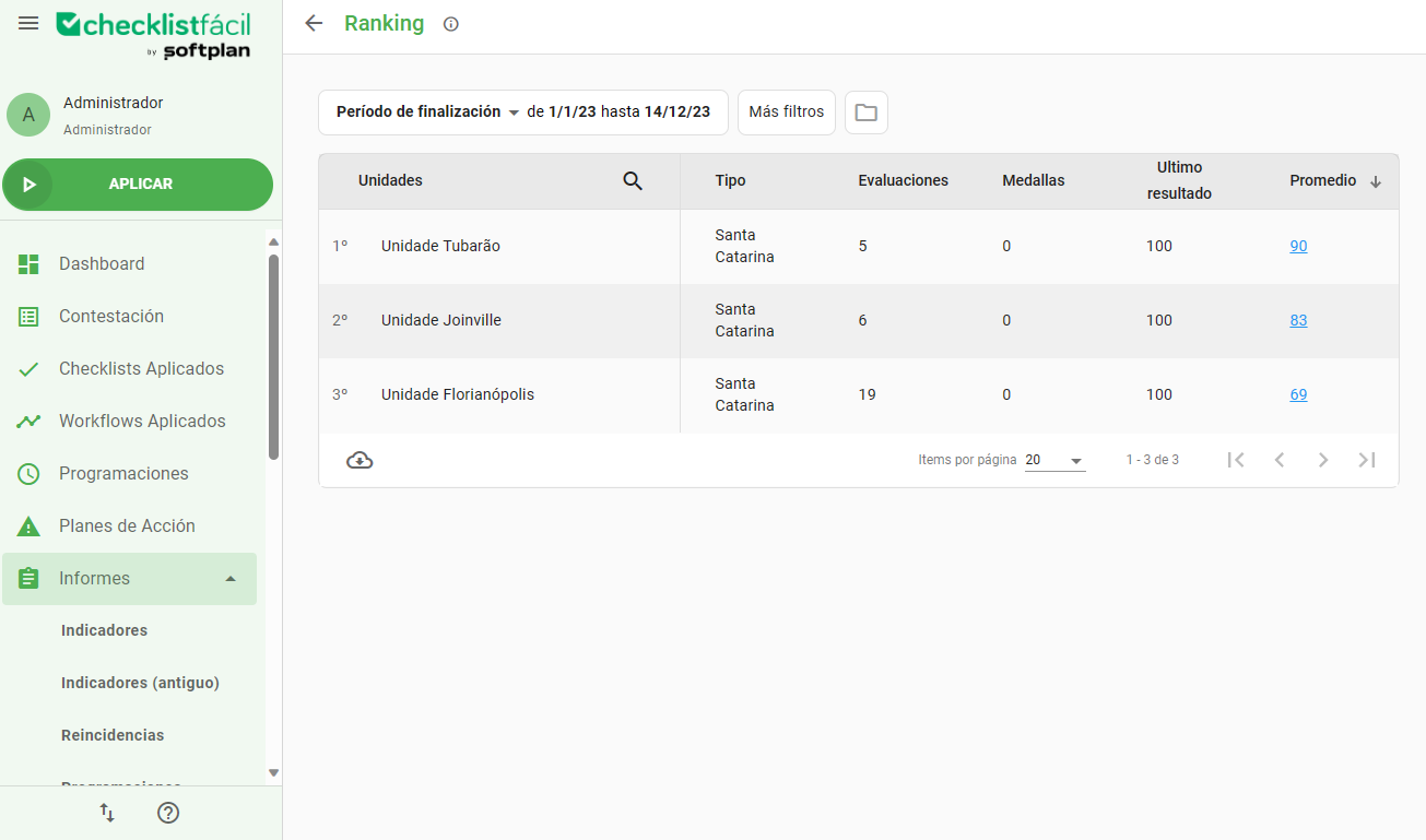 Es posible visualizar un podio basado en los resultados obtenidos en cada unidad a través del Ranking de Unidades. Esta herramienta permite comparar el desempeño entre diferentes sedes o departamentos de manera visual y cuantitativa.