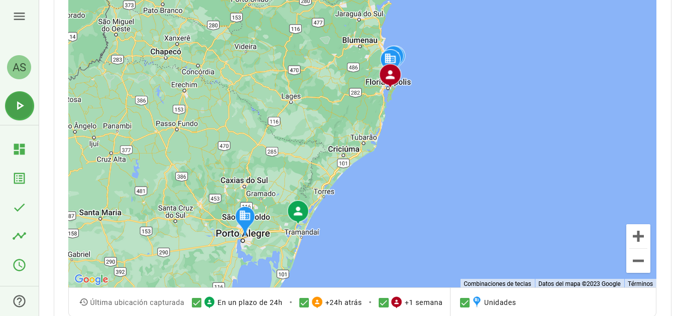 La ubicación de los usuarios se actualizará en tiempo real. Dependiendo del tiempo transcurrido desde la última ubicación obtenida, los pines cambiarán de color para facilitar el monitoreo:
