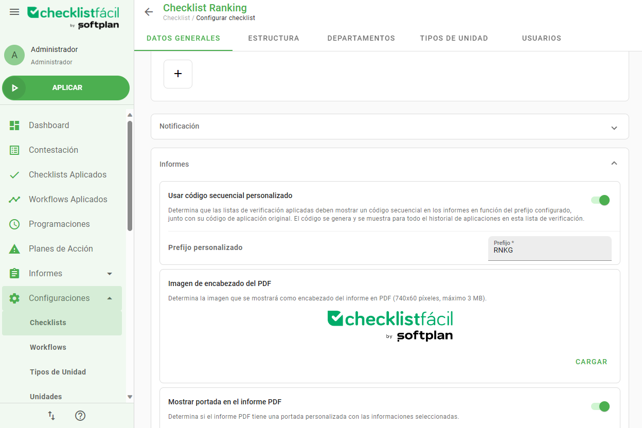 - Navegue a Configuración > Checklists > Editar.