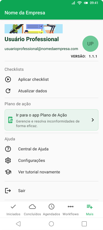 El menú Más tiene como objetivo ayudar a identificar las herramientas presentes en la aplicación, tales como: aplicación de checklists, planes de acción, ubicación y rutas, informes y mucho más.