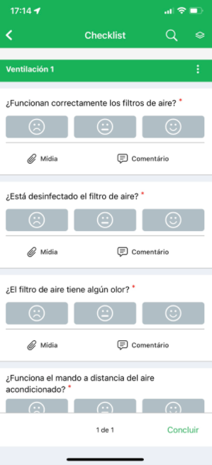 Después de hacer clic en este botón, seleccione una unidad y después un checklist que será evaluado. Tan pronto como abras el cuestionario, aparecerán los elementos que puedes evaluar: