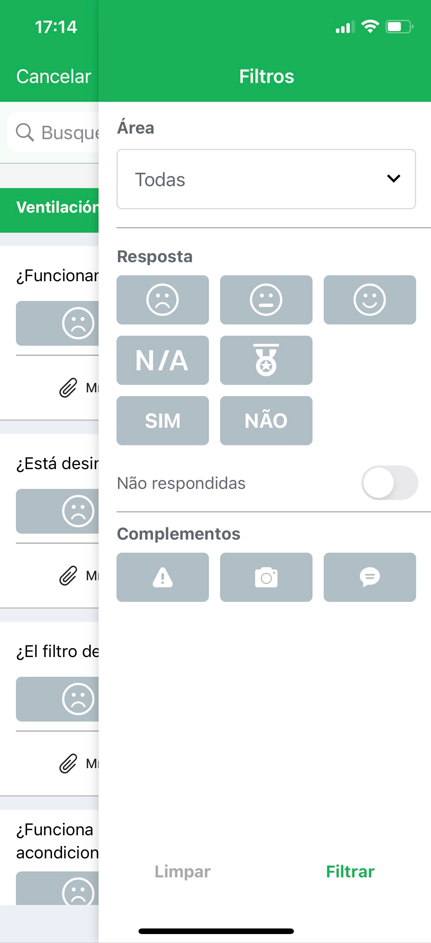 Buscar y Filtrar: Usa la lupa para buscar ítems o el icono de filtro para ver elementos sin respuesta o con respuestas específicas.