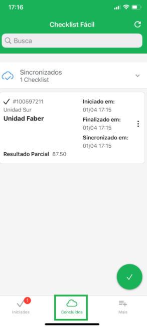 Para ver los cuestionarios ya finalizados, ve al menú inferior de la aplicación y haz clic en Terminado: