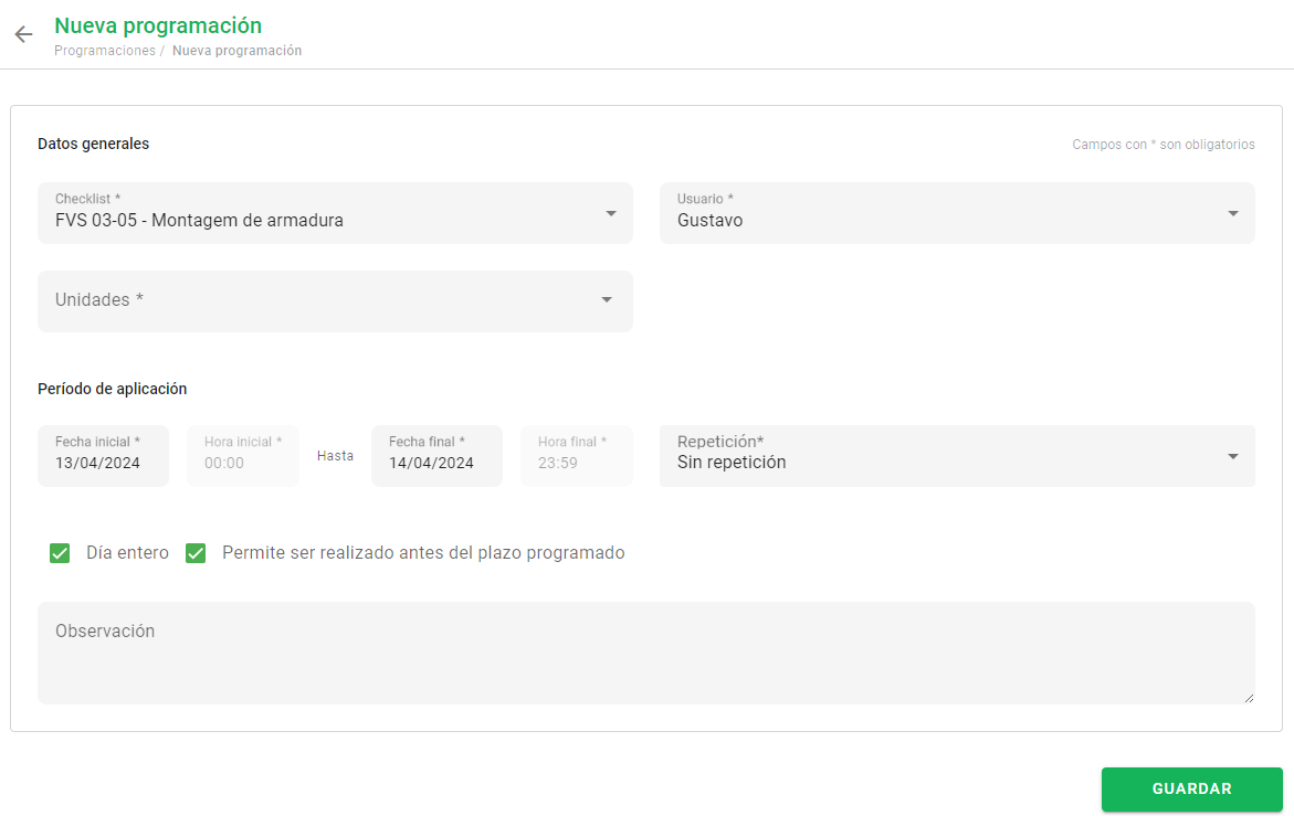 Para evitar tales inconvenientes, el Checklist Fácil cuenta con un recurso llamado “Programaciones”. A través de esta función, es posible programar las aplicaciones de tus checklists, especificando los responsables y la frecuencia de ejecución.
