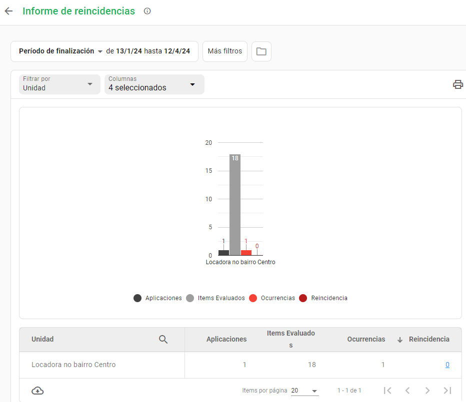 Y hablando de cuellos de botella, los informes te permiten ver el número de recurrencias, es decir, cuántas no conformidades se detectaron más de una vez en una unidad o artículo.