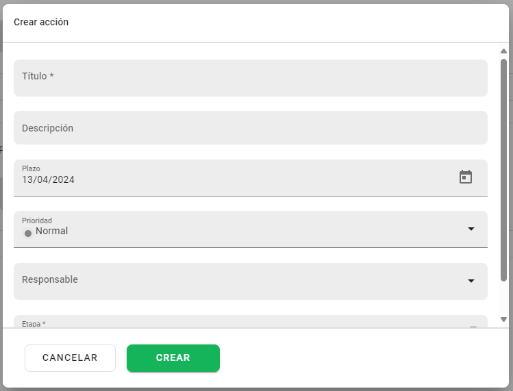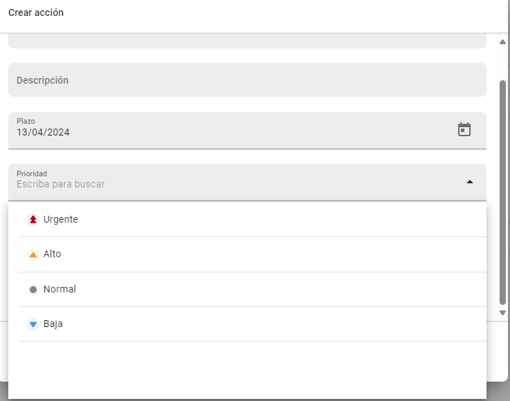 - Título: Nombre de la acción requerida (campo obligatorio).