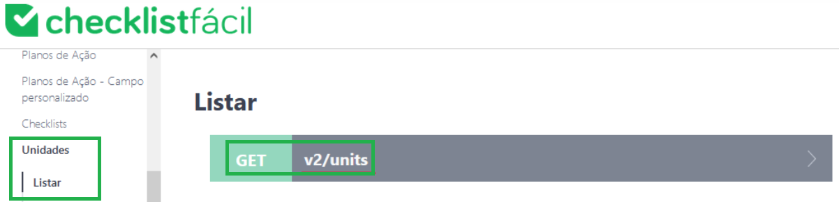 Para listar las unidades registradas, consulte la documentación para obtener el método HTTP y la URL que se utilizarán, de acuerdo con el ejemplo a continuación: