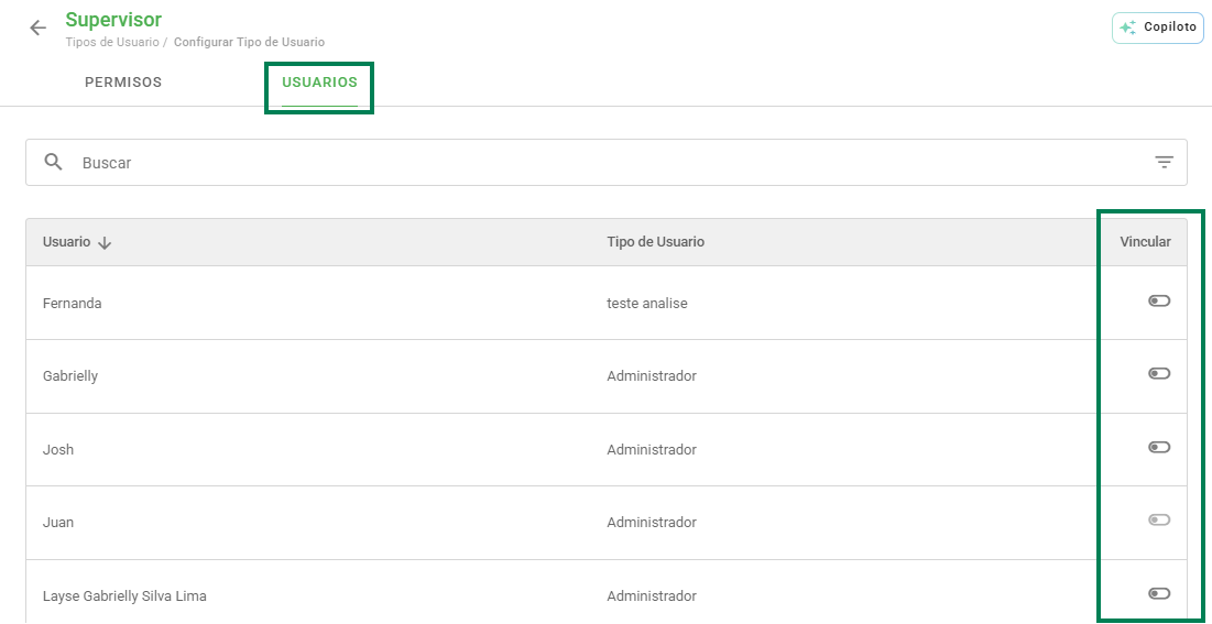 Con un tipo de usuario creado y sus permisos ya seleccionados, es hora de vincularlo a un usuario. Para realizar este vínculo, haga clic en la pestaña Usuarios, como en la imagen de abajo: