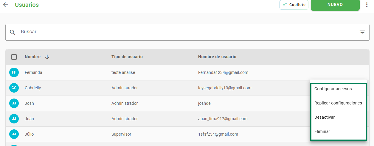 Al lado de la opción de editar, es posible eliminar o desactivar un usuario, haciendo clic en los tres puntitos y seleccionando la opción que desee: