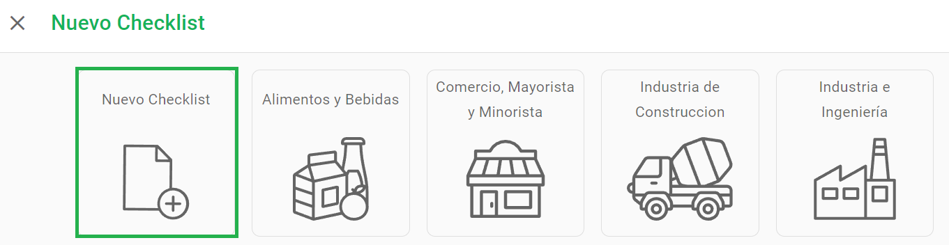 - (3) Crear checklist desde cero: esta opción es muy parecida a la primera (botón Nuevo) y tiene la misma finalidad.