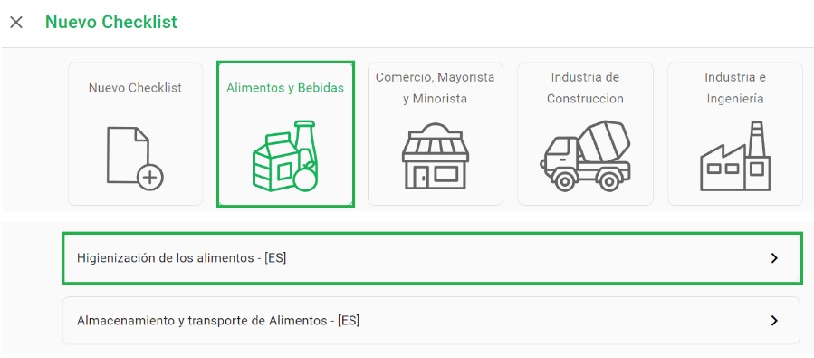 - (4) Crear checklist a partir de una plantilla: esta opción te permite reutilizar plantillas de checklists existentes, como en el ejemplo de Industria de la Construcción.