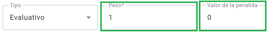 En el tipo evaluativo también se puede elegir el peso que tendrá este ítem en la valoración final de checklist y el valor de la penalidad.