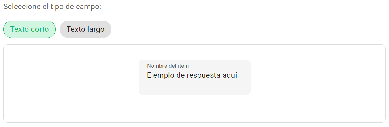 Tipo de texto: este tipo permite responder el ítem en un campo de texto corto o texto largo.