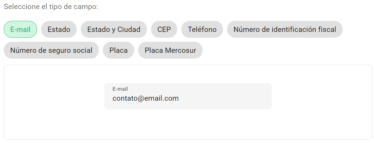 Tipo de Registro: el tipo de respuesta configurado como registro tiene varias opciones de llenado, como e-mail, estado, placa, entre otras.