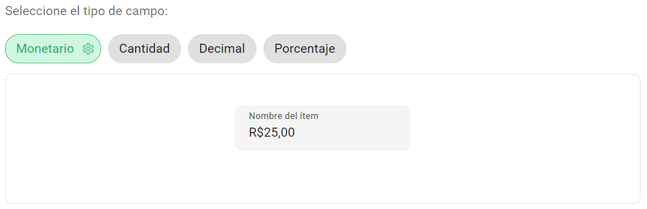 Tipo Numérico: el tipo numérico permite definir el formato en el que se responderá el valor, como cantidad, valor decimal, valor monetario y porcentaje.