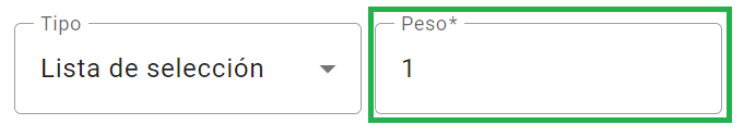 En el tipo Lista de selección también se puede elegir el peso que tendrá este ítem en la evaluación final de checklist.