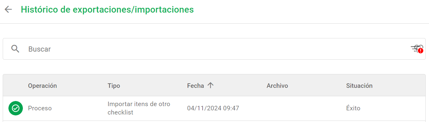 ¡Sí! Para optimizar la creación de checklists, es posible importar elementos tanto mediante planilha como desde checklists existentes.