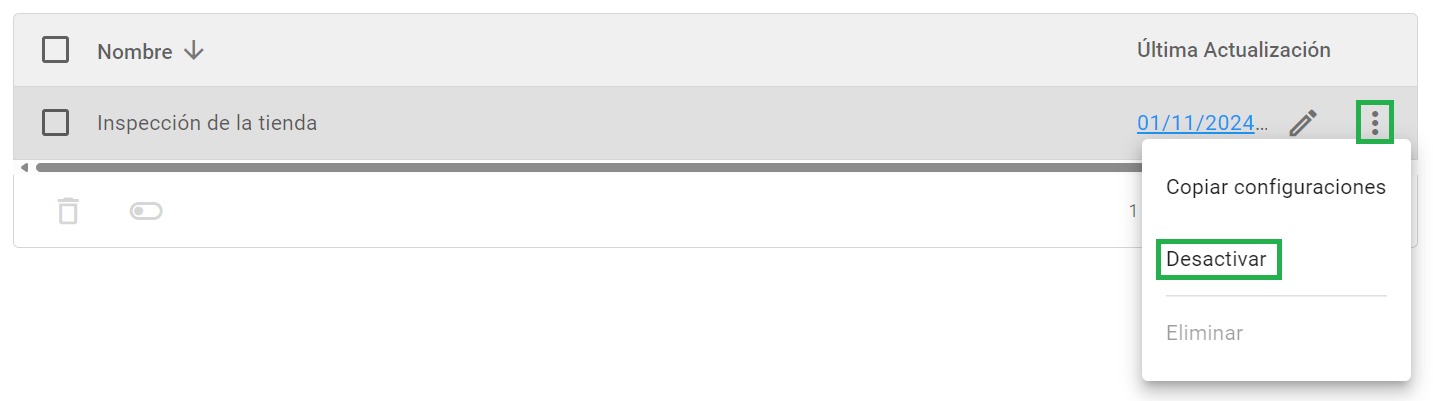 Luego de desactivarlo, repite el mismo procedimiento para eliminar el checklist. El sistema le pedirá que ingrese un código para eliminarlo.