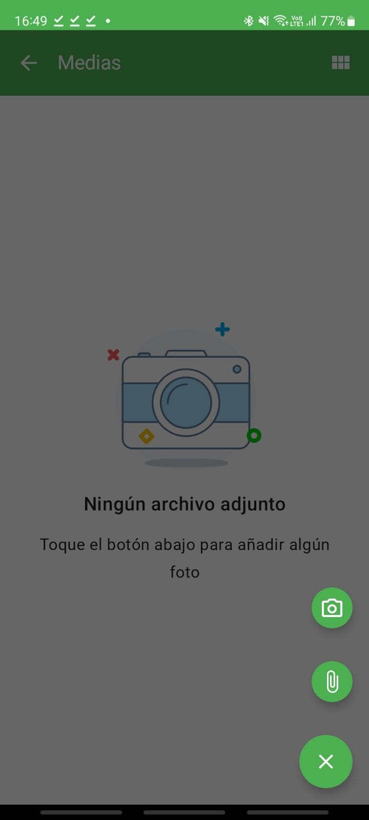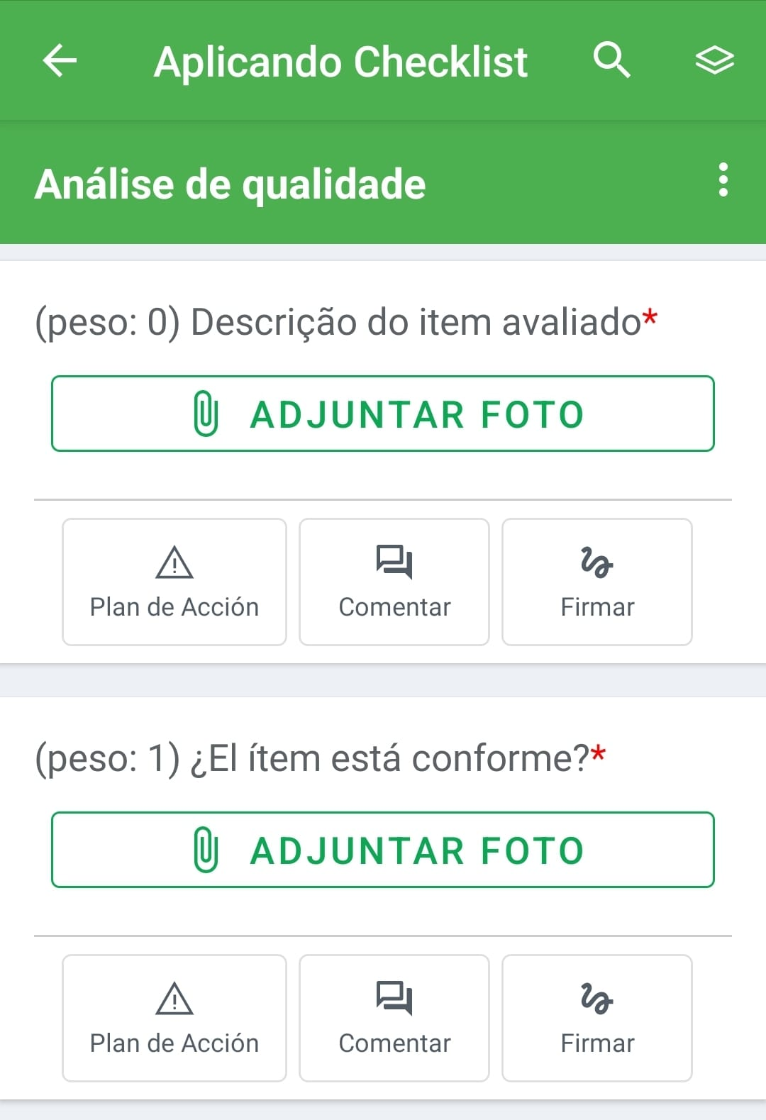 - Iniciar aplicación: Abra el checklist desde su dispositivo. Los ítems configurados mostrarán el botón Adjuntar foto.