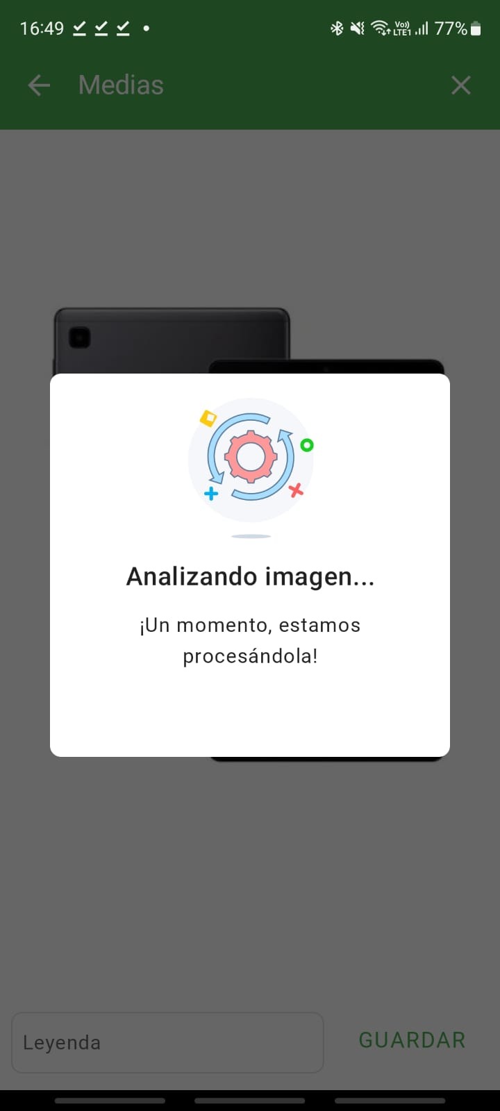 - Procesamiento IA: Un modal indicará que la IA está analizando la imagen.