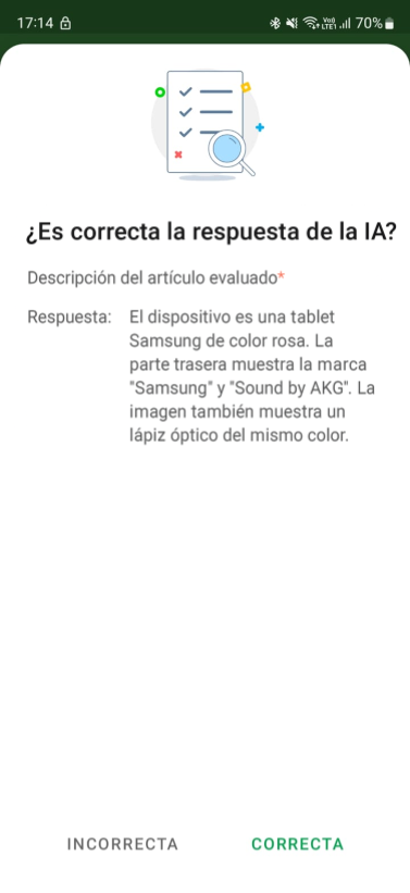 - Responder nuevamente: Si el análisis no fue satisfactorio, haga clic en "Responder nuevamente" para cargar una nueva foto.
