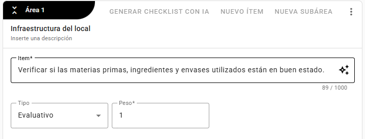 Esta funcionalidad está disponible en la estructura del checklist, tanto al crear como al editar ítems: