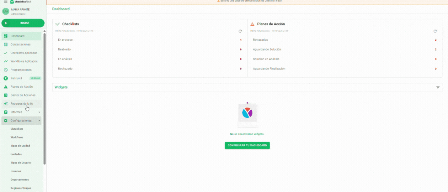 Accede a Configuraciones > Checklists.