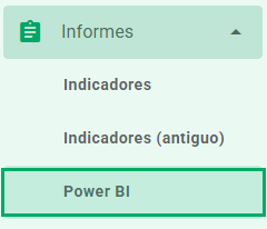 Para acceder al módulo, seleccione la opción Informes en el menú lateral izquierdo y, a continuación, haga clic en la opción Power BI.