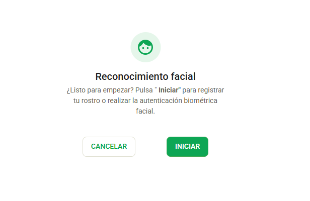 Después de registrar el rostro de referencia, en el próximo acceso donde se solicite autenticación, el usuario será dirigido a la pantalla de Reconocimiento Facial. Al igual que en el registro inicial, deberá hacer clic en Iniciar y seguir las instrucciones que se muestren en el sistema.