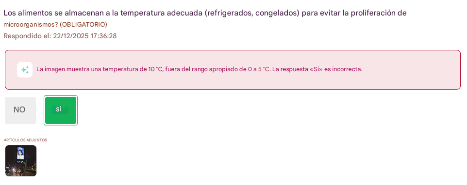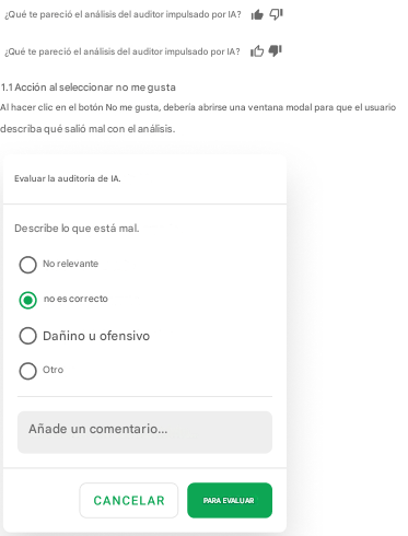 - Negativo (Dislike): Abre un menú para que usted reporte el error (Ej: "No es correcto", "No es relevante").