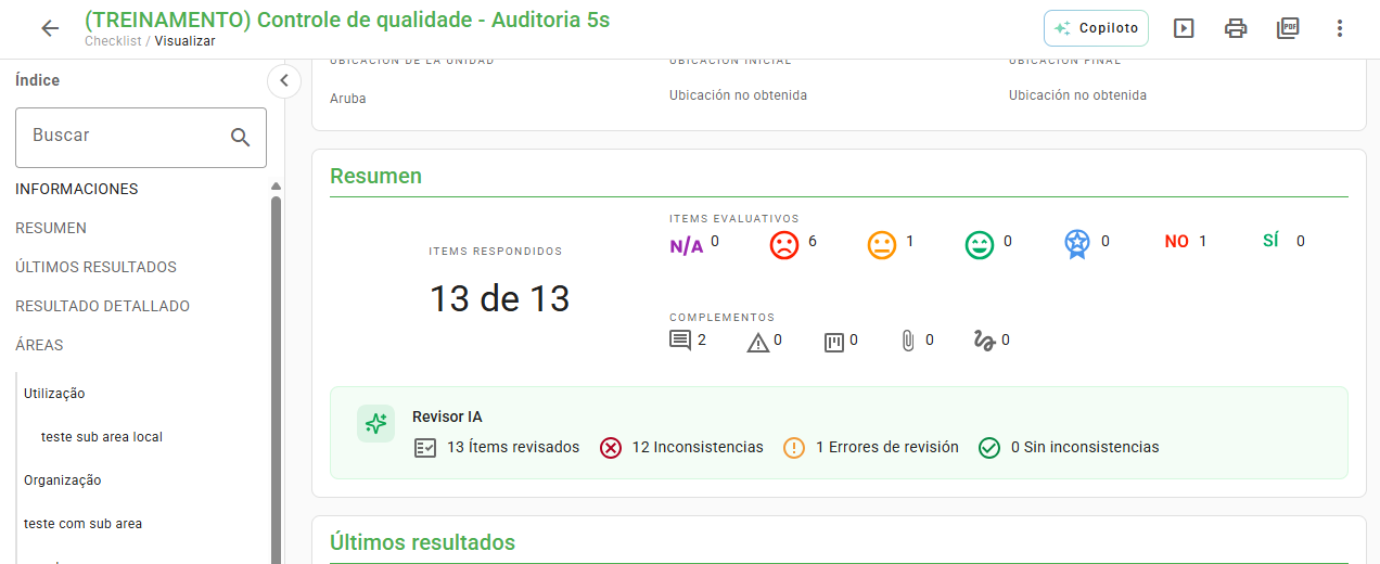 El Revisor IA es nuestra nueva solución de inteligencia artificial que automatiza el análisis de sus checklists aplicados. Identifica automáticamente inconsistencias entre las respuestas dadas en el campo y lo que se esperaba para cada ítem, garantizando mayor confiabilidad a sus datos sin la necesidad de una verificación manual exhaustiva.
